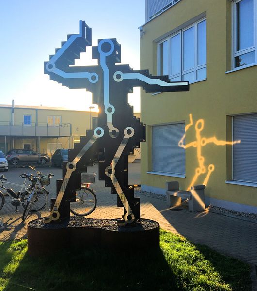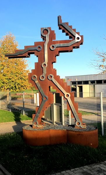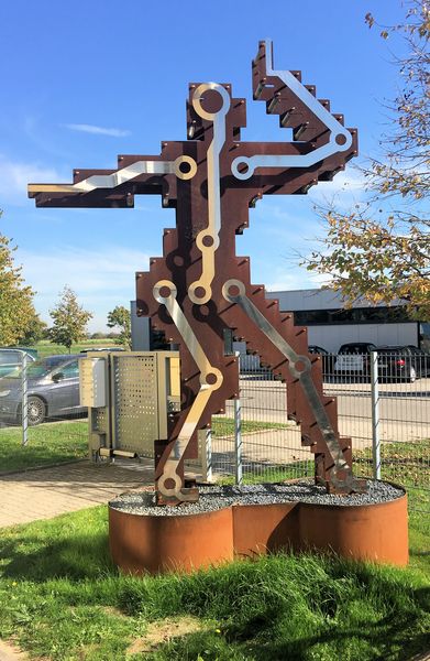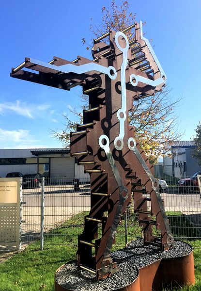 | Die Digitalismus Skulptur wurde gefertigt aus rostfarbenem Cortenstahl und poliertem Edelstahl | intern | natürliche Links |